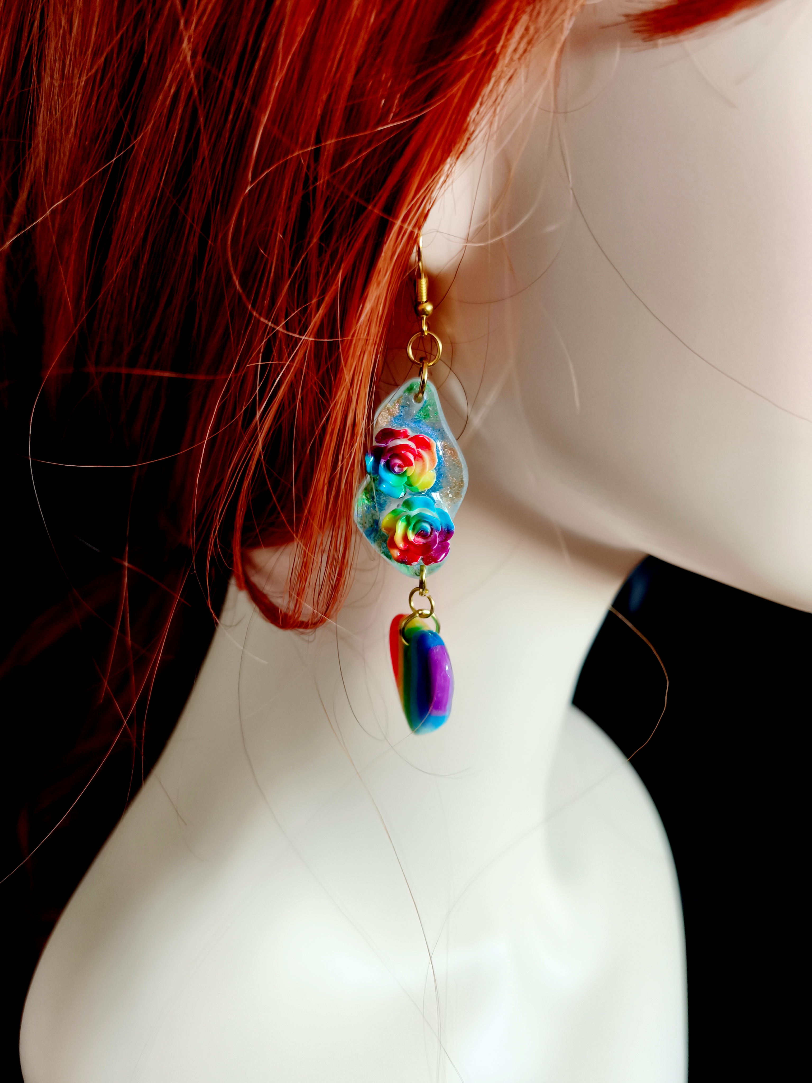 Conjurées sous le sceau d'Hera, gardienne des unions sacrées, ces boucles incarnent l’alchimie parfaite : cœur et rose unis dans un arc-en-ciel astral. Chaque couleur trace un arc dans l’éther, reliant les âmes au-delà des genres et des mondes.