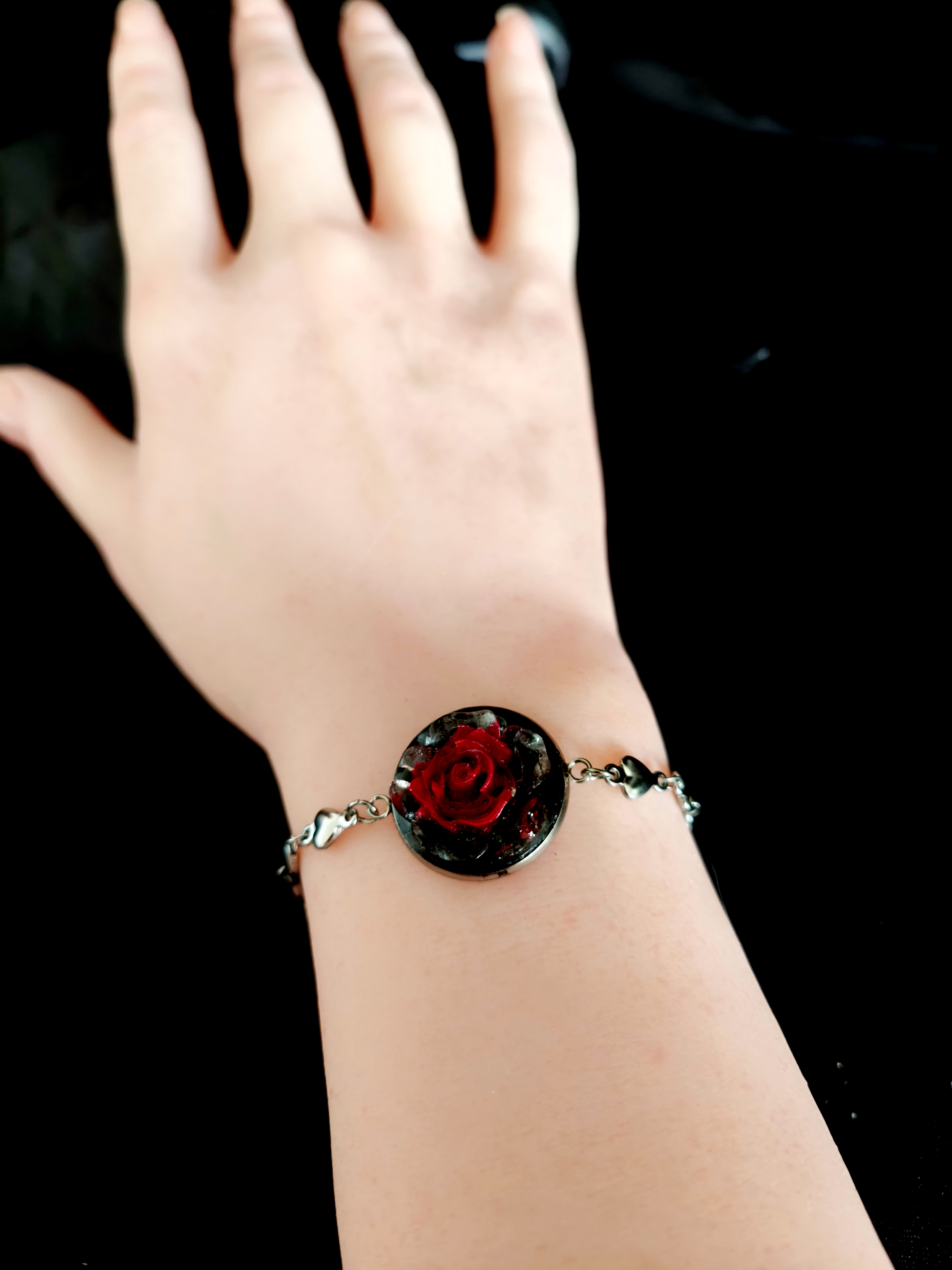 Flowheart 15.0 EUR TissĂ© Ă  la lueur d’une lune ensanglantĂ©e, ce bracelet enchaĂźne les cƓurs comme autant de serments oubliĂ©s. En son centre trĂŽne une rose rouge sombre, envoĂ»tante et Ă©ternelle, cueillie dans un...