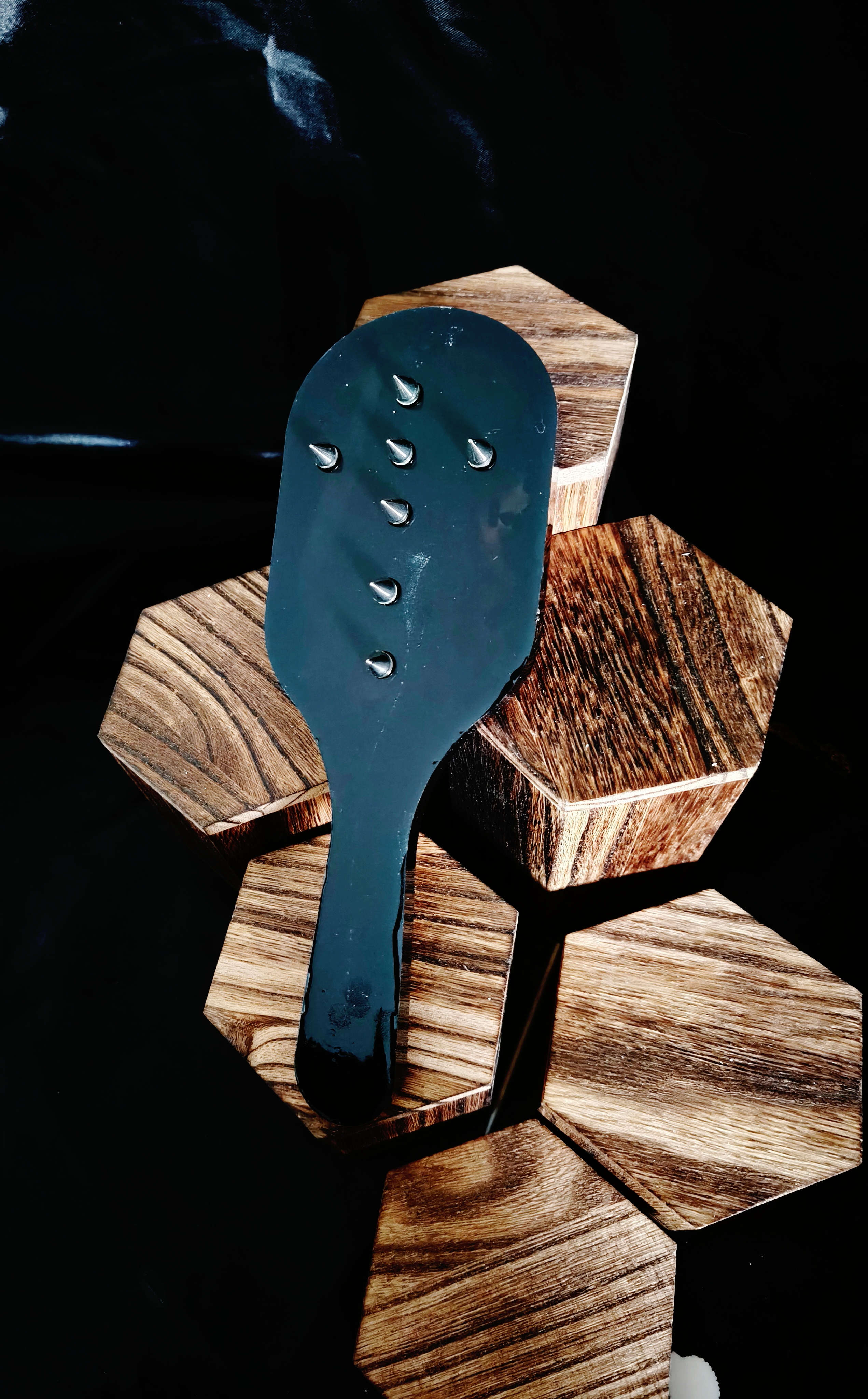 Coulé dans la résine comme un sort interdit, ces paddles sont des offrandes à l'ombre. Chaque impact résonnent comme un rituel, une invocation du contrôle, de dévotion et de fièvre. Froid au toucher, brûlant à l'usage. Des artefacts pour celles et ceux qui savent que la douleur peut être une prière.