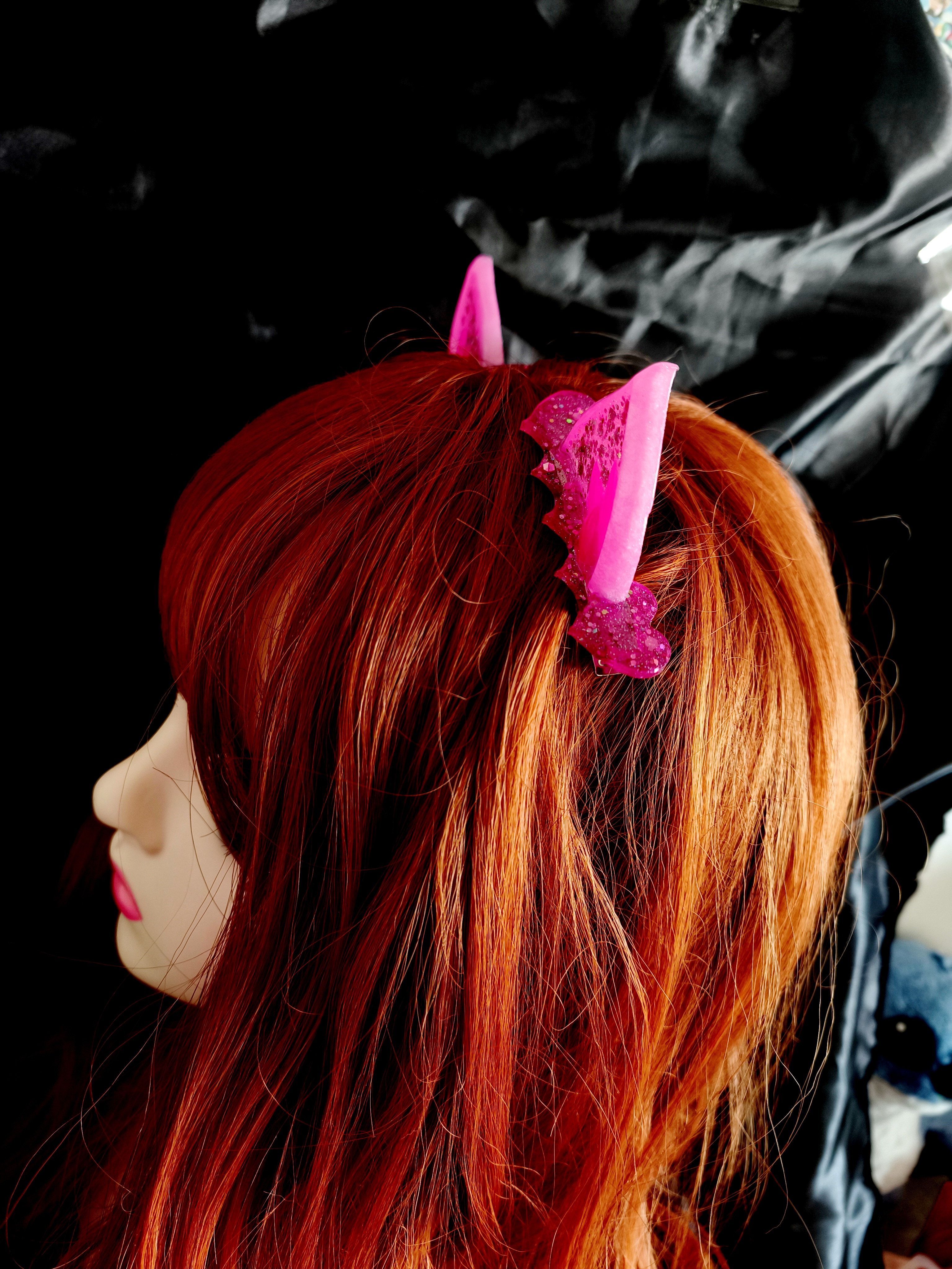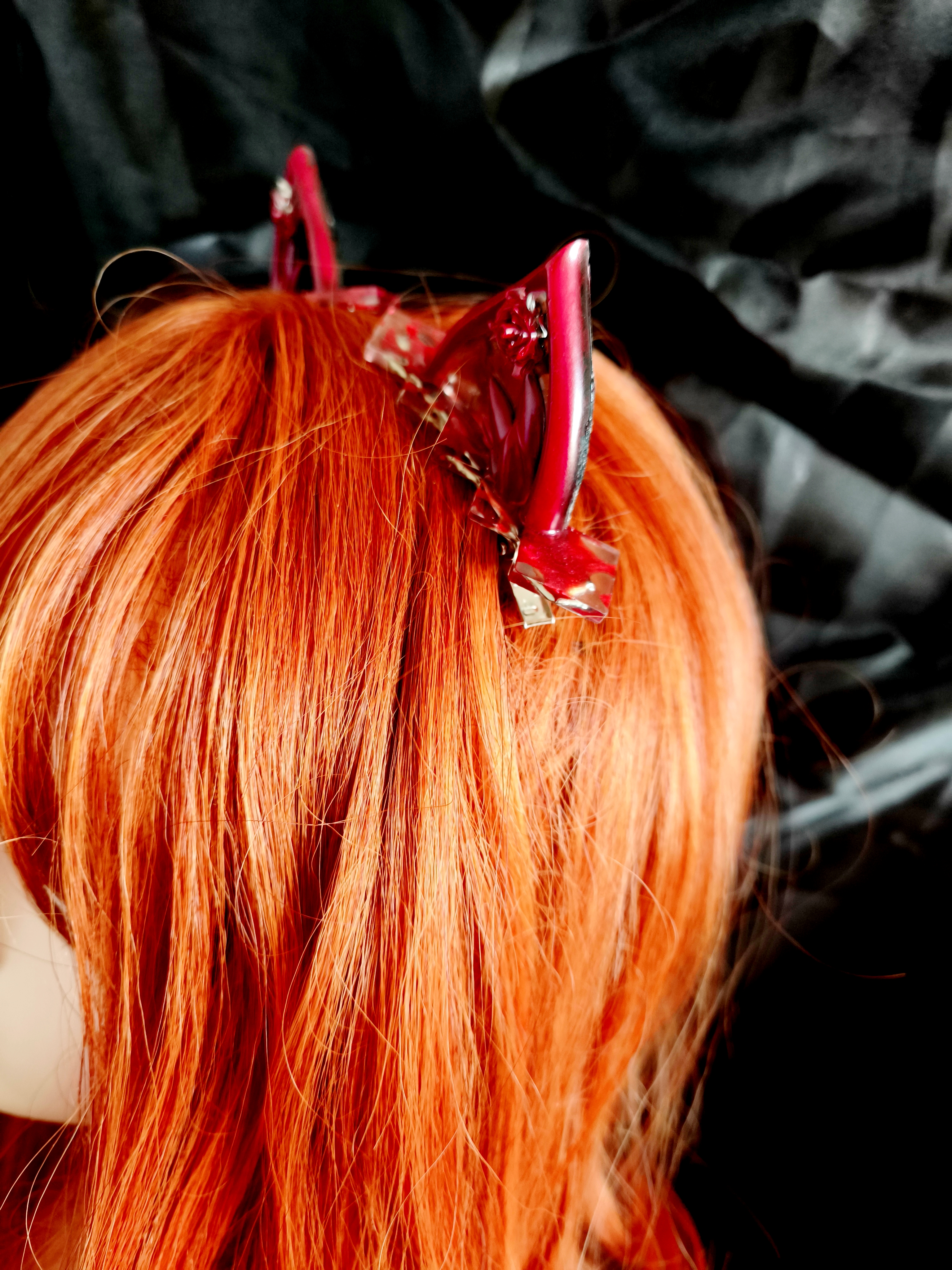 Nées des ténèbres et du crépuscule, ces pinces en forme d’oreilles de chat mêlent le noir fumé au rouge bordeaux, comme un souffle de sorcellerie élégante. Elles évoquent une créature nocturne...