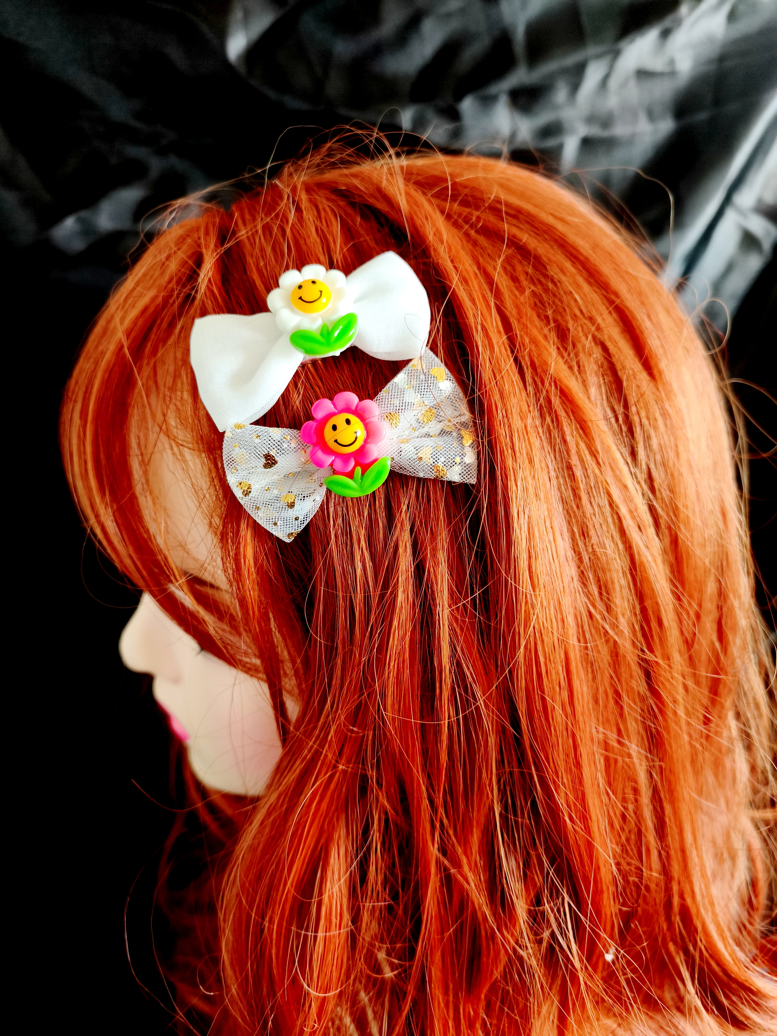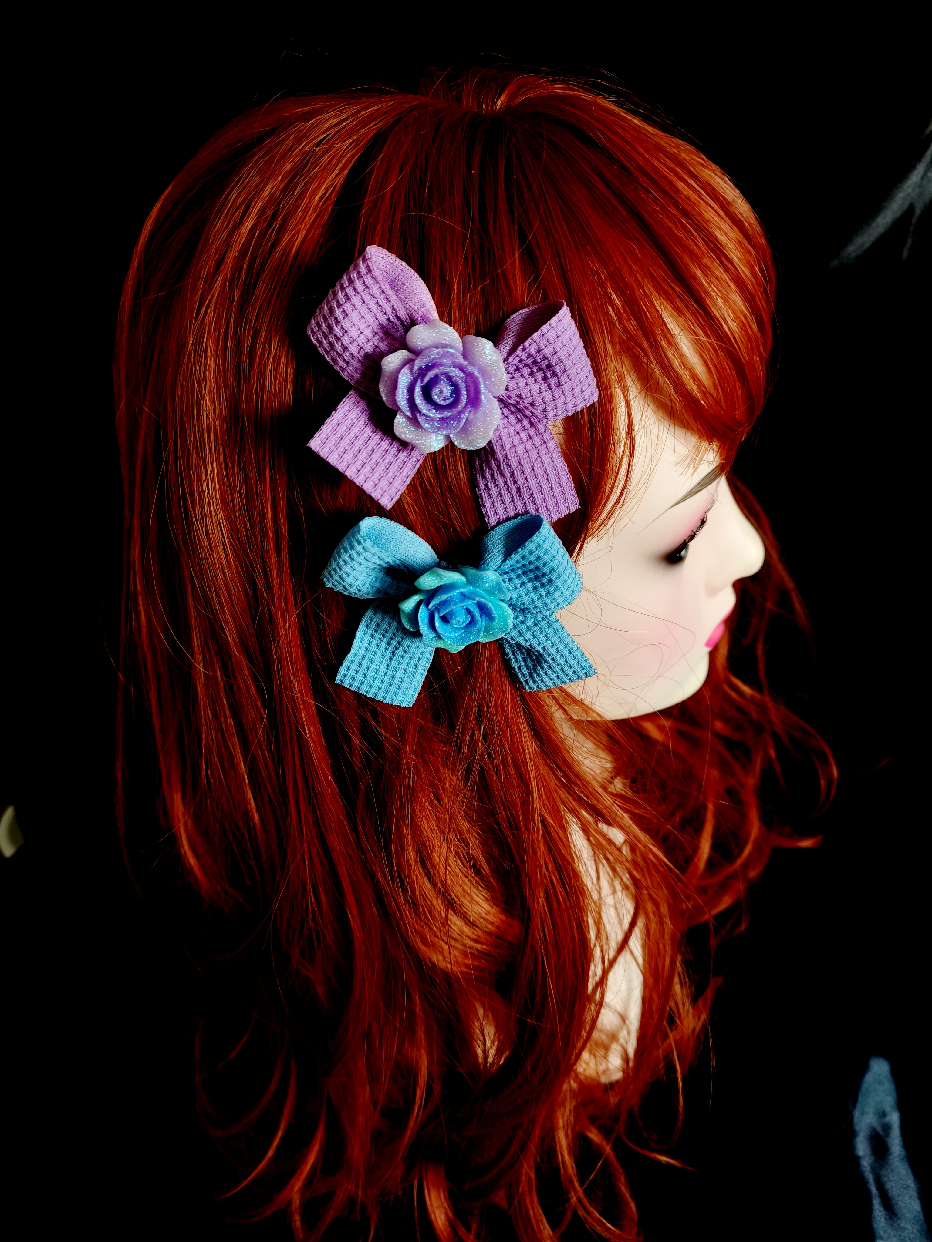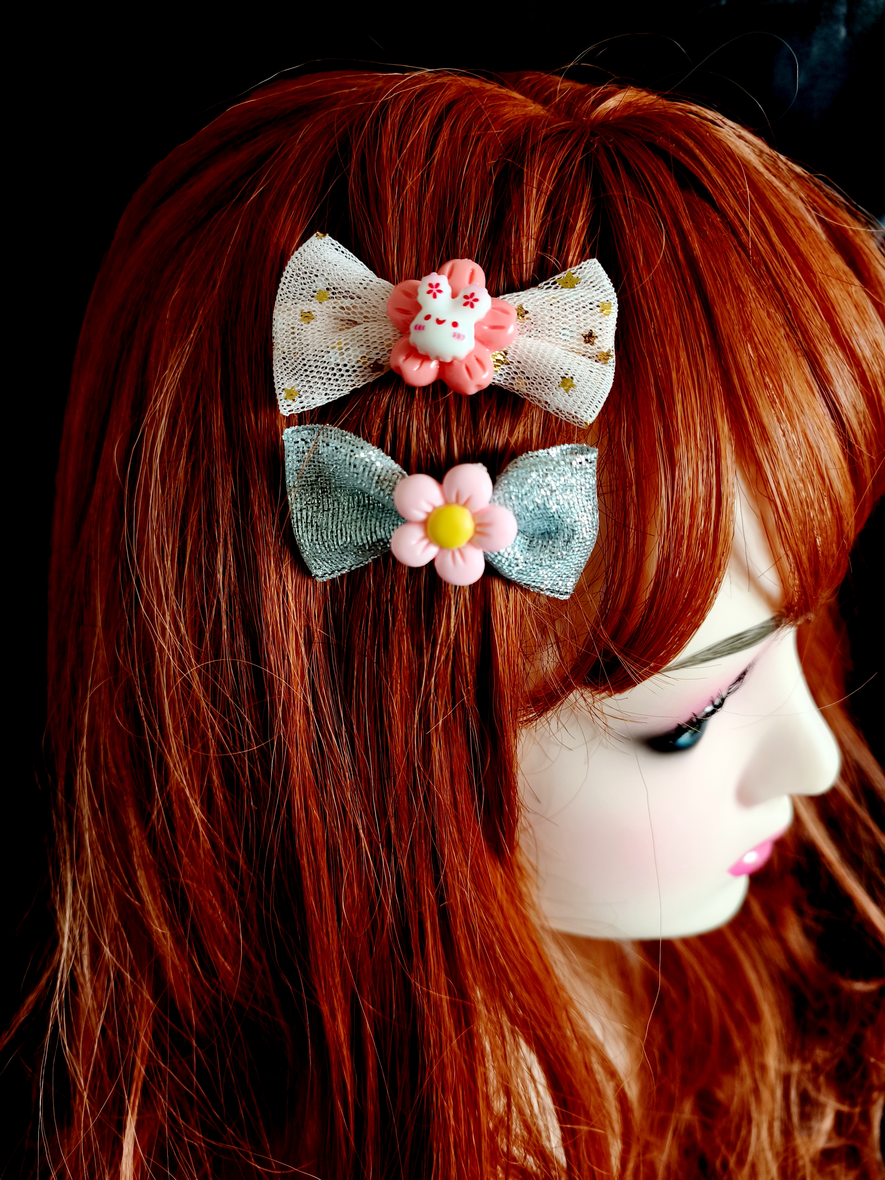Tissées dans un souffle ancien, ces petites pinces nouées portent en leur cœur un charme figé : une fleur scellée dans la résine, gardienne des saisons et des sorts légers. Elles murmurent la grâce...